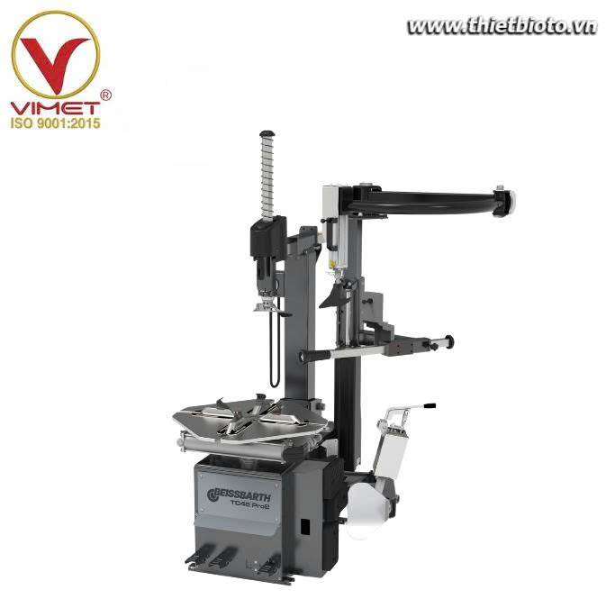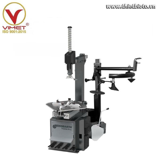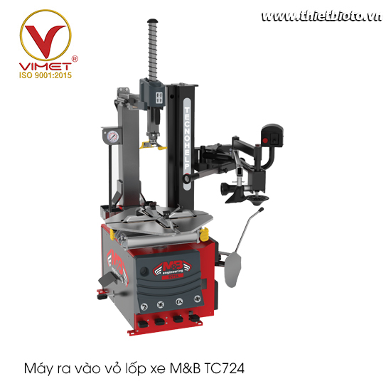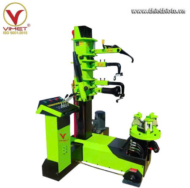 - Trụ móc lốp điều khiển bằng bàn đạp làm trụ nghiêng ra ngoài giúp thao tác nhanh và thuận tiện với lốp có bề rộng lớn.